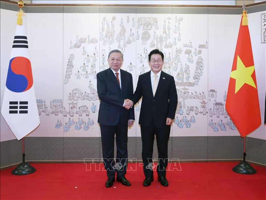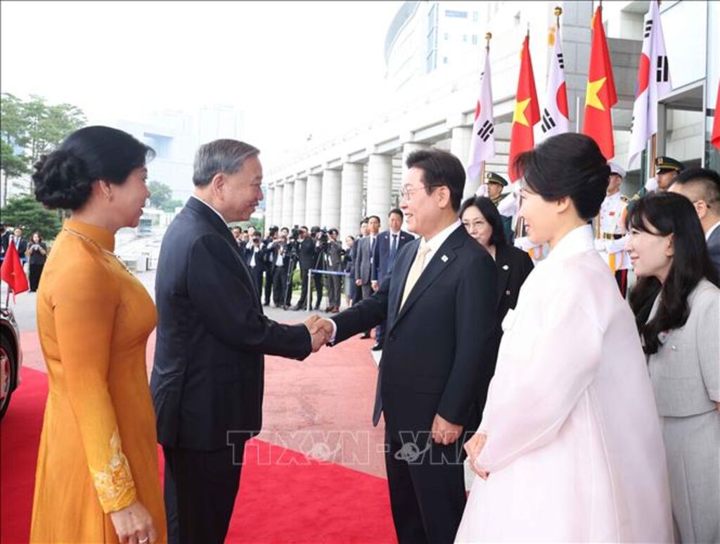 Theo đặc phái viên TTXVN, sáng 11/8, lễ đón Tổng Bí thư Tô Lâm và Phu nhân Ngô Phương Ly cùng Đoàn đại biểu cấp cao Việt Nam thăm cấp Nhà nước tới Đại Hàn Dân quốc (từ ngày 10-13/8) theo lời mời của Tổng thống Đại Hàn Dân quốc Lee Jae Myung và Phu nhân đã được tổ chức trọng thể tại Phủ Tổng thống Hàn Quốc Yongsan.Vào lúc 9h30 (theo giờ địa phương, tức 7h30 theo giờ Việt Nam), Tổng Bí thư Tô Lâm và Phu nhân cùng Đoàn đại biểu cấp cao Việt Nam đã đến Phủ Tổng thống Hàn Quốc Yongsan.