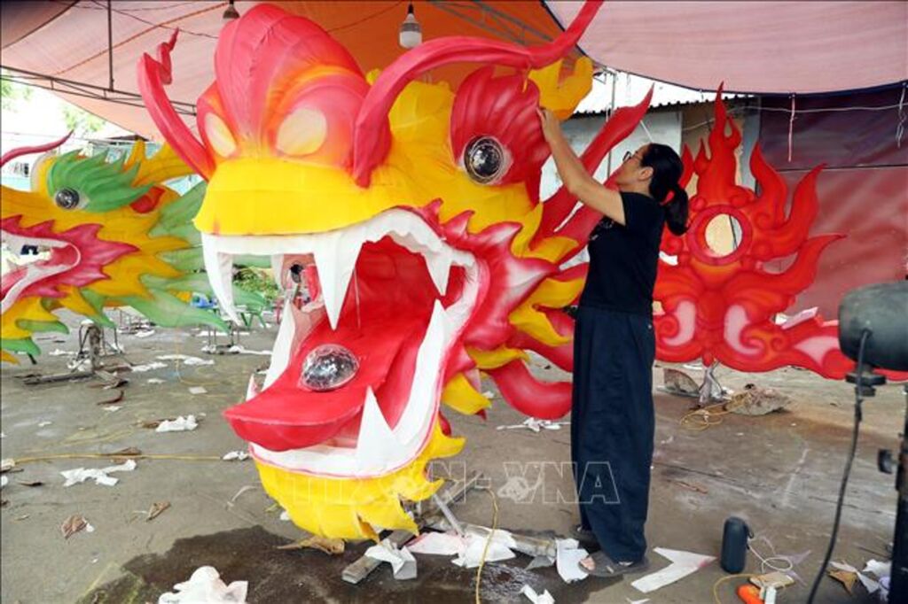Hơn 2 tháng nay, xưởng sản xuất mô hình đèn Trung thu của anh Phạm Văn Sang (tổ dân phố 2, phường Minh Xuân) luôn bận rộn hoàn thiện các mô hình đèn khổng lồ phục vụ lễ hội. Anh Sang cho biết, nếu trước đây trung bình 5 - 7 ngày hoàn thiện một mô hình, thì năm nay do yêu cầu cao hơn về thẩm mỹ, kỹ thuật và độ sinh động, thời gian thực hiện kéo dài tới gần một tháng. Người thợ phải am hiểu mỹ thuật tạo hình, cơ khí, điện, sơn và phối màu, chi phí sản xuất cũng tăng theo.