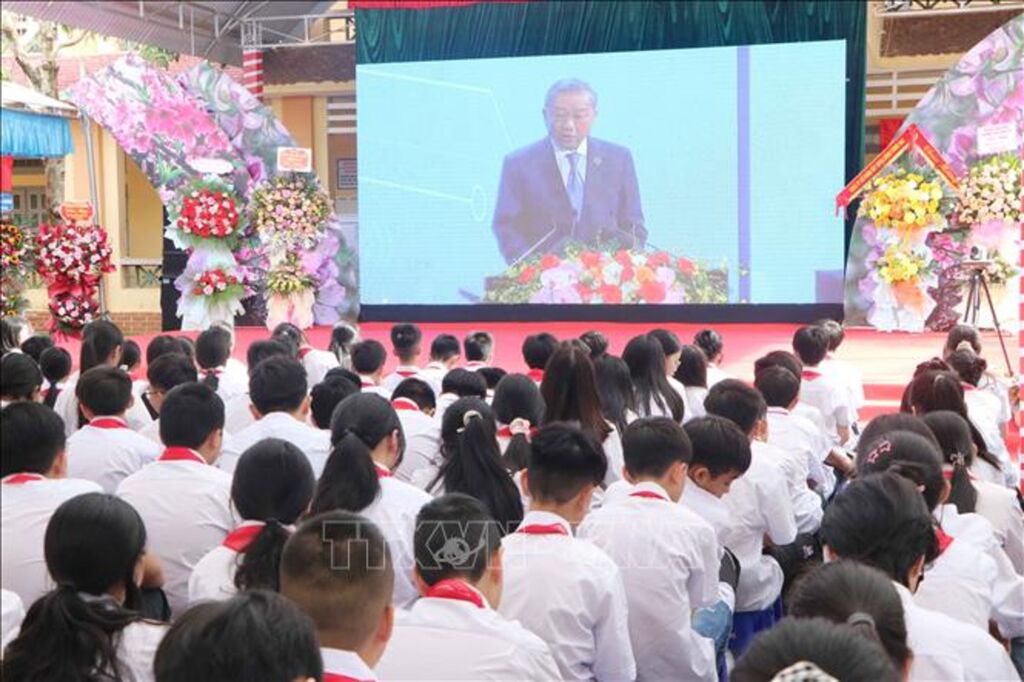 Trường Trung học Cơ sở Đoàn Kết, phường Đoàn Kết, tỉnh Lai Châu được chọn làm cầu truyền hình với điểm cầu Trung tâm Hội nghị quốc gia.
