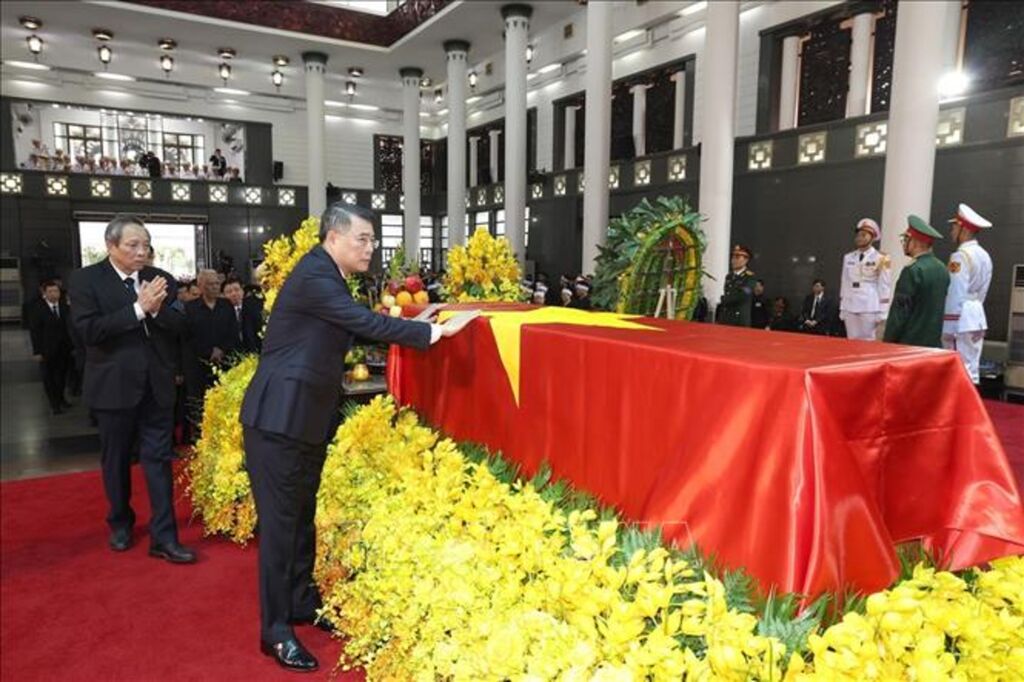 Sáng 25/7, tại Nhà Tang lễ Quốc gia - số 5 Trần Thánh Tông (Hà Nội), cùng thời gian này tại Hội trường Thống nhất (Thành phố Hồ Chí Minh) và quê nhà xã Đông Hội, huyện Đông Anh (thành phố Hà Nội), Ban Chấp hành Trung ương Đảng, Quốc hội, Chủ tịch nước, Chính phủ, Ủy ban Trung ương Mặt trận Tổ quốc Việt Nam và gia đình đã tổ chức trọng thể Lễ viếng đồng chí Nguyễn Phú Trọng, Tổng Bí thư Ban Chấp hành Trung ương Đảng Cộng sản Việt Nam, theo nghi thức Quốc tang.
