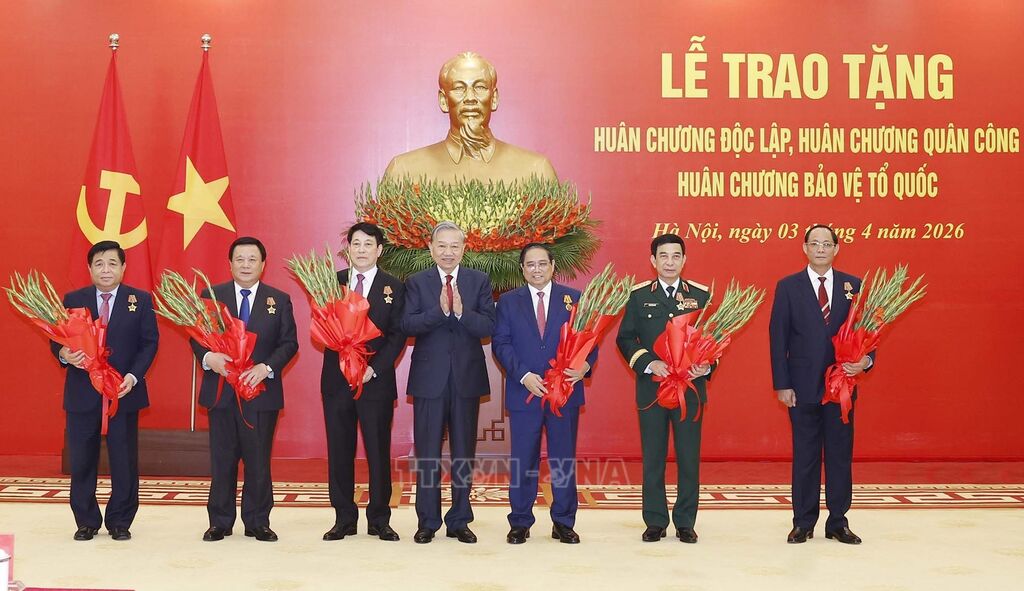 Chiều 3/4, tại Trụ sở Trung ương Đảng, Bộ Chính trị, Ban Bí thư đã tổ chức Lễ trao tặng Huân chương Độc lập, Huân chương Quân công, Huân chương Bảo vệ Tổ quốc cho các đồng chí lãnh đạo chủ chốt, lãnh đạo cấp cao của Đảng, Nhà nước, lãnh đạo các bộ, ban, ngành Trung ương, có thành tích đặc biệt xuất sắc trong sự nghiệp xây dựng và bảo vệ Tổ quốc.
