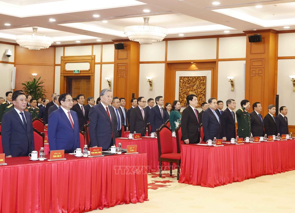 Cùng tham dự có các đồng chí: Lương Cường, Chủ tịch nước; Phạm Minh Chính, Thủ tướng Chính phủ; Trần Thanh Mẫn, Ủy viên Bộ Chính trị, Chủ tịch Quốc hội; Trần Cẩm Tú, Ủy viên Bộ Chính trị, Thường trực Ban Bí thư; các đồng chí Ủy viên Bộ Chính trị, nguyên Ủy viên Bộ Chính trị; Ủy viên Ban Bí thư, nguyên Ủy viên Ban Bí thư; Ủy viên Trung ương Đảng, nguyên Ủy viên Trung ương Đảng, lãnh đạo các bộ, ban, ngành Trung ương…