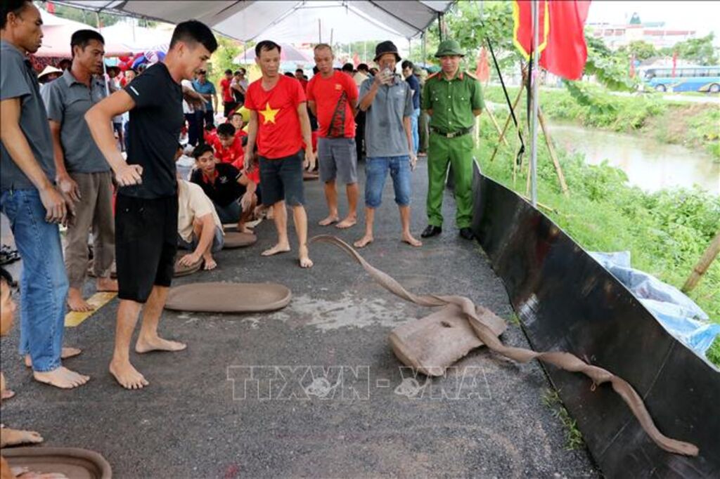 Bầu không khí sôi động với tiếng trống, tiếng reo hò của khán giả càng làm cho màn so tài của các pháo thủ như cuộc trình diễn sức khỏe và vẻ đẹp của đôi bàn tay khéo léo của người lao động nông thôn thêm phần hào hứng, kịch tính.