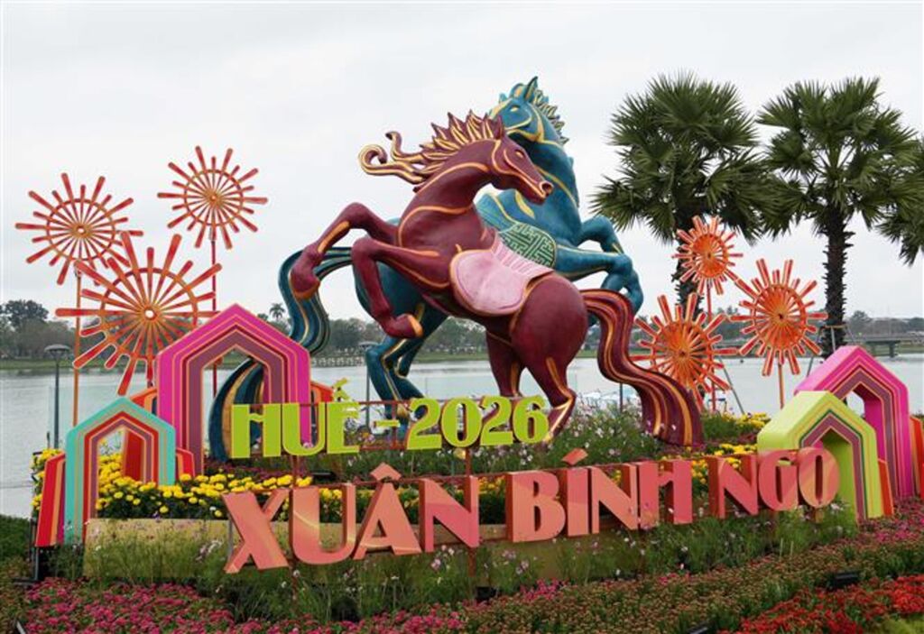 Huế lại lựa chọn cách thể hiện giàu bản sắc cung đình. Linh vật bên sông Hương sử dụng gam màu vàng hoàng cung, đỏ son, xanh ngọc bích. Tạo hình “phi thiên” lấy cảm hứng từ Ngựa Gióng và Long Mã, biểu trưng cho khí phách và trí tuệ. Cặp song mã trước trụ sở UBND thành phố được thiết kế theo triết lý âm dương hài hòa, tượng trưng cho cân bằng và khởi vận đầu năm.