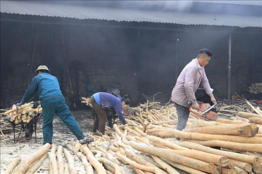 Tại các cơ sở sản xuất này, công nhân tấp nập làm việc, người cắt gỗ, người vận chuyển, người xếp gỗ vào lò để chuẩn bị đốt. Hệ thống nhà xưởng khung sắt mái tôn được dựng thành các dãy; trong mỗi cơ sở có từ 10-16 lò đốt than ngày đêm hoạt động. Các lò đốt vận hành theo phương pháp thủ công, khói trắng được xả thẳng ra môi trường không qua xử lý. Đáng chú ý, khu vực xung quanh xưởng chưa có hệ thống rãnh thoát nước, khiến nước thải tràn ra môi trường. Sản phẩm than củi sau khi ra lò được đóng bao, tập kết để thu gom và đưa đi tiêu thụ.