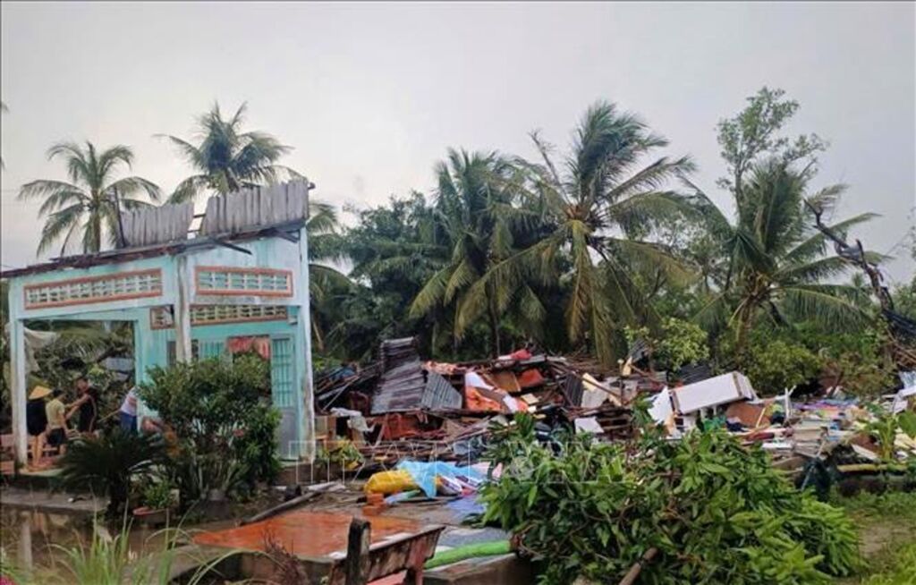Lốc xoáy còn khiến 16 căn nhà bị thiệt hại, trong đó, 4 căn sập hoàn toàn, 12 căn còn lại bị tốc mái, hư hỏng nặng.