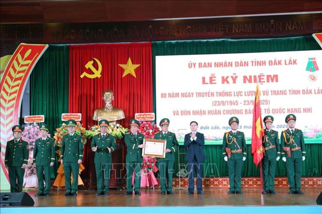 Ngày 23/9, UBND tỉnh Đắk Lắk tổ chức lễ kỷ niệm 80 năm Ngày truyền thống lực lượng vũ trang tỉnh Đắk Lắk (23/9/1945 – 23/9/2025) và đón nhận Huân chương Bảo vệ Tổ quốc hạng Nhì.