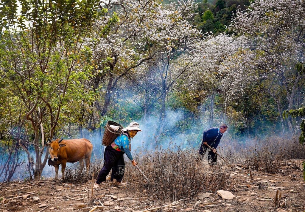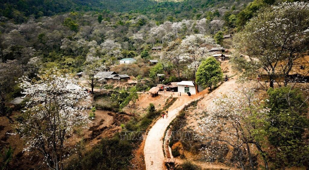 Tháng 3, trên khắp núi rừng tỉnh Điện Biên lại ngập trong sắc trắng của hoa ban. (Ảnh: Trịnh Xuân Tư - TTXVN)