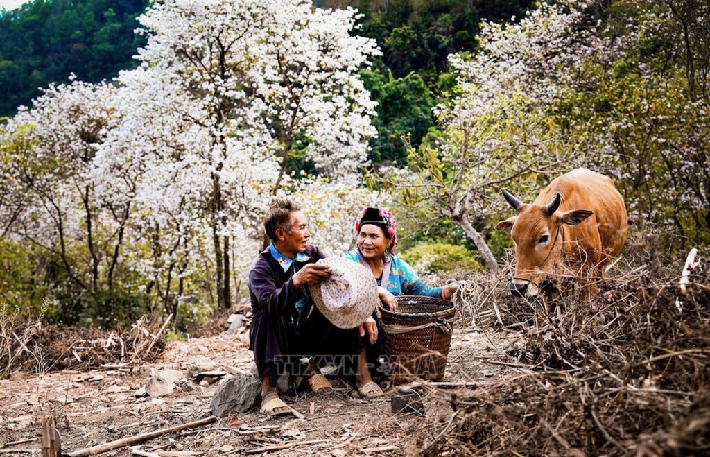 Hoa ban cũng là biểu tượng kiêu hãnh của đồng bào các dân tộc tỉnh Điện Biên nói riêng và Tây Bắc nói chung, hoa biểu trưng cho sự thuần khiết, trong sáng của người phụ nữ, cũng là biểu tượng cho cuộc sống hạnh phúc, tình yêu. (Ảnh: Trịnh Xuân Tư - TTXVN)