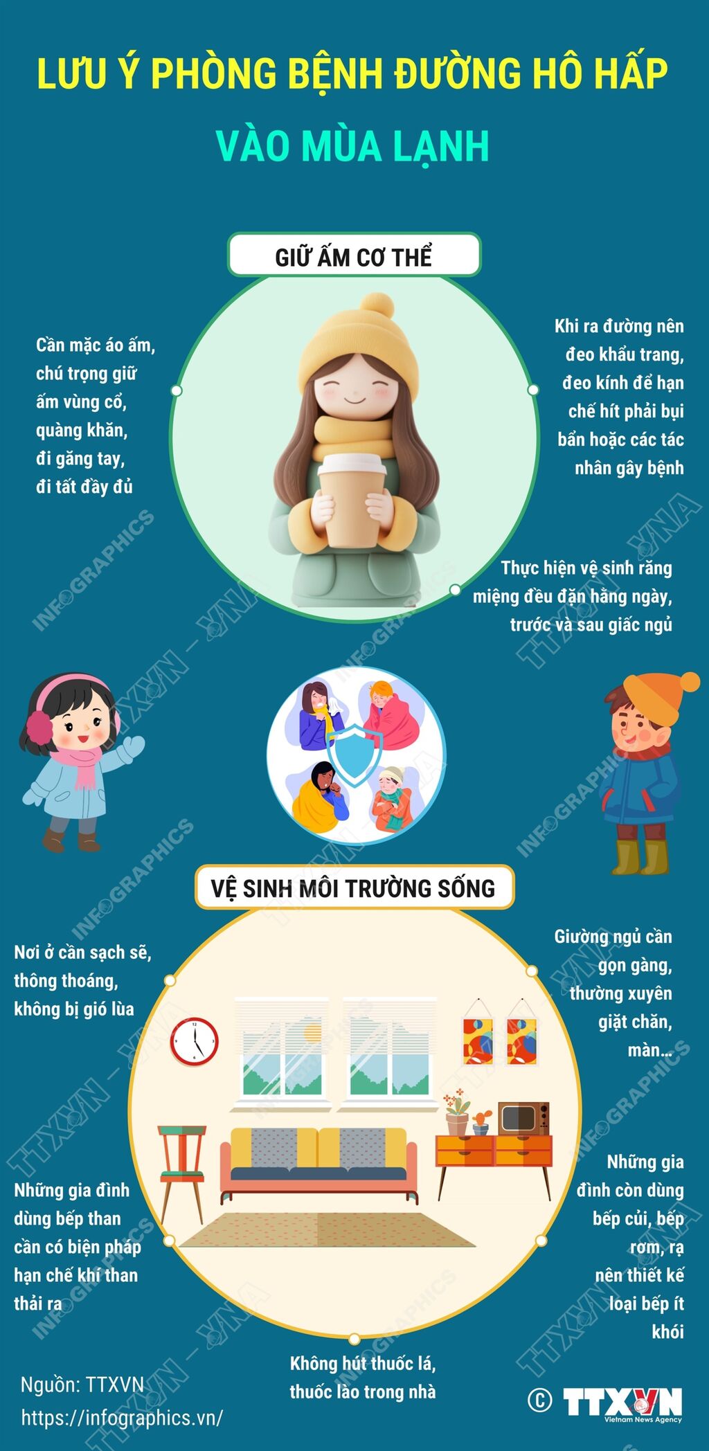 Mùa lạnh là thời điểm các bệnh đường hô hấp dễ gia tăng, vì vậy mỗi người cần chủ động giữ ấm cơ thể, bảo đảm vệ sinh môi trường sống và thực hiện các biện pháp phòng bệnh để bảo vệ sức khỏe.