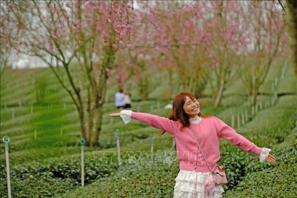 Sáng 14/1, dù thời tiết không thuận lợi, có sương mù, nhưng hàng trăm người dân và du khách vẫn kéo đến khu vực đồi chè Cầu Đất (xã Xuân Trường) ngắm mai anh đào và chụp ảnh. Khu vực này có hàng nghìn cây mai anh đào được trồng xen kẽ nông trường chè ô-long, mở cửa cho khách vào tham quan tự do. Ghi nhận tại các vùng có nhiều mai anh đào như Cầu Đất (xã Xuân Trường), xã Trạm Hành, Xuân Thọ, Trại Mát… hàng loạt cây đã bung nở, khoe sắc hồng rực rỡ.