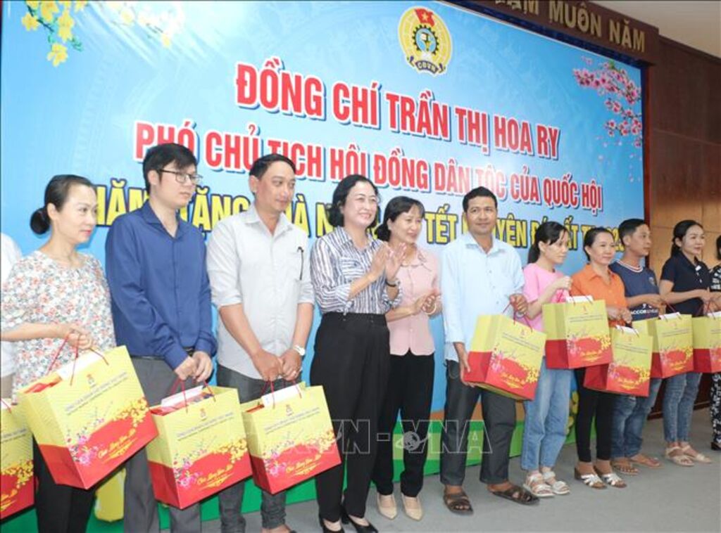 Chiều 11/1, bà Trần Thị Hoa Ry, Phó Chủ tịch Hội đồng Dân tộc của Quốc hội (Đại biểu Đoàn đại biểu Quốc hội tỉnh Bạc Liêu) đã đến thăm và tặng 100 suất quà (mỗi suất 1,2 triệu đồng) cho đoàn viên, người lao động trên địa bàn tỉnh Bạc Liêu nhân dịp Tết Nguyên đán Ất Tỵ 2025.