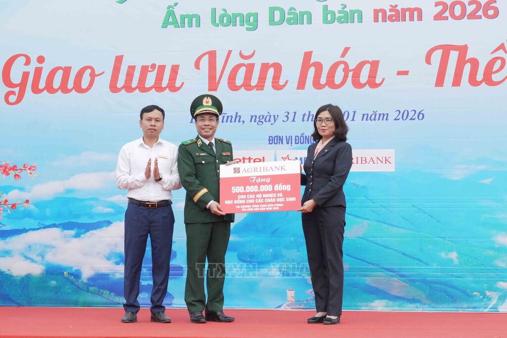 Năm 2026, Chương trình “Xuân Biên phòng ấm lòng dân bản” được tổ chức theo hướng thiết thực, hiệu quả, hướng về cơ sở, chăm lo trực tiếp đời sống nhân dân khu vực biên giới. Cụ thể, trao quà Tết cho gần 800 hộ gia đình thuộc diện gia đình chính sách, hộ nghèo, hộ cận nghèo, hộ đặc biệt khó khăn và đồng bào dân tộc thiểu số; trao học bổng cho 183 học sinh; hỗ trợ bò giống để phát triển sinh kế lâu dài cho 31 hộ gia đình; tổ chức khám bệnh, tư vấn sức khỏe và cấp phát thuốc miễn phí cho 700 người dân xã Hương Xuân; khánh thành 4 căn nhà đại đoàn kết tại bản Giàng 2.