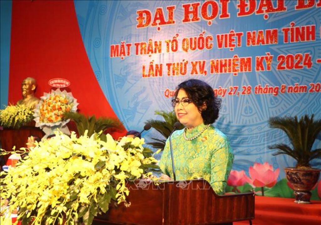 Phát biểu chỉ đạo Đại hội, Phó Chủ tịch Ủy ban Trung ương MTTQ Việt Nam Tô Thị Bích Châu ghi nhận và đánh giá cao kết quả nổi bật mà MTTQ Việt Nam tỉnh và các tổ chức thành viên đã đạt được trong nhiệm kỳ qua. Bà đề nghị MTTQ Việt Nam tỉnh Quảng Ngãi tiếp tục bám sát quan điểm, chủ trương, đường lối của Đảng, Nhà nước về công tác Mặt trận, xây dựng và phát huy khối đại đoàn kết dân tộc, bảo vệ vững chắc Tổ quốc trong tình hình mới, phù hợp với đặc điểm, tình hình địa phương.
