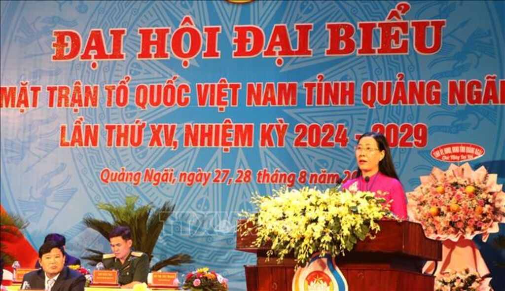 Trong ngày 27-28/8, Mặt trận Tổ quốc (MTTQ) Việt Nam tỉnh Quảng Ngãi tổ chức Đại hội đại biểu lần thứ XV, nhiệm kỳ 2024-2029 với chủ đề “Đoàn kết - Dân chủ - Đổi mới - Phát triển”. Đại hội đã thông qua 8 chỉ tiêu cơ bản, 3 nhiệm vụ đột phá và các giải pháp thực hiện 6 chương trình hành động nhiệm kỳ 2024-2029. Trong đó có phấn đấu hằng năm 100% khu dân cư tổ chức tốt Ngày hội Đại đoàn kết toàn dân tộc. Mỗi khu dân cư có ít nhất 1 công trình hoặc phần việc tiêu biểu, điển hình; vận động, phấn đấu đến cuối nhiệm kỳ hoàn thành xóa nhà tạm, dột nát…
