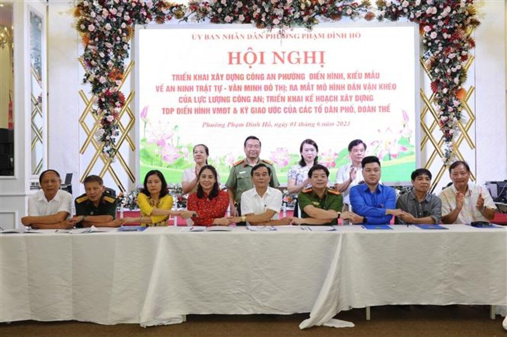 Tại phường Phạm Đình Hổ, để tổ chức đoàn thể, tổ dân phố cùng “xắn tay”, góp sức với lực lượng Công an trong việc giữ gìn an ninh trật tự và văn minh đô thị, tại hội nghị triển khai, phường đã tổ chức ký cam kết thi đua, cụ thể hóa chủ trương trên dưới sự chứng kiến của lãnh đạo cấp trên.