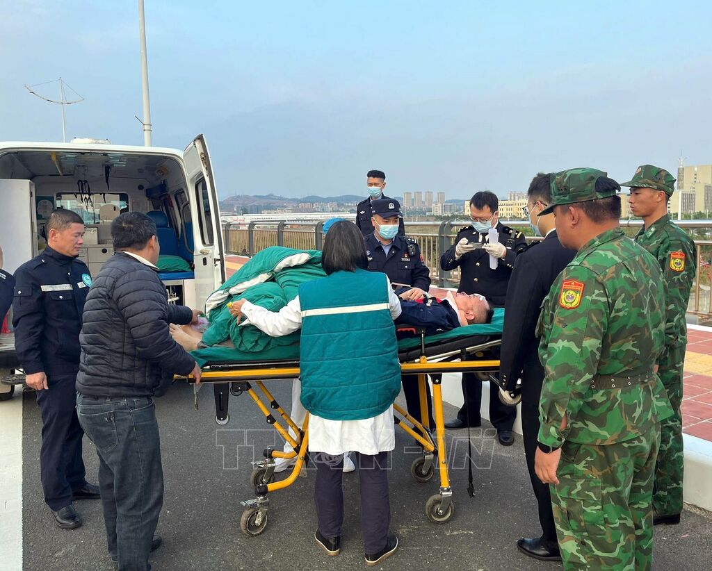Tiếp đó, vào lúc 10h30 phút, ngày 31/12/2025 tại Cửa khẩu quốc tế Móng Cái (khu vực cầu Bắc Luân 2), hai bên phối hợp mở luồng xanh cho xe cứu thương BKS 14A- 014.26 đưa một nữ công dân Việt Nam là Lê Thị Hường (sinh năm 1962, phường Móng Cái 1, tỉnh Quảng Ninh) bị vỡ thân đốt sống xuất cảnh sang Trung Quốc điều trị.