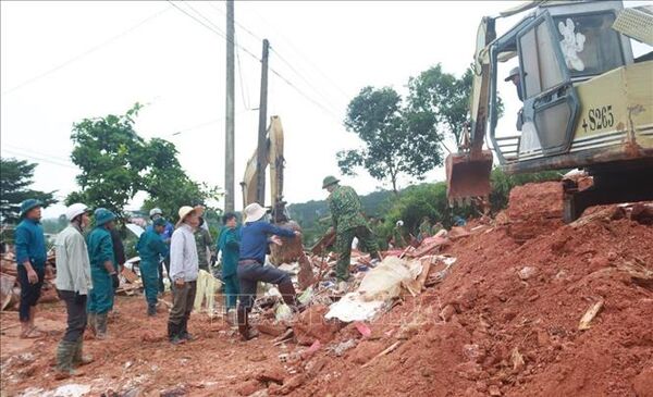 Gia đình ông Thắng đã thuê máy xúc và phối hợp với lực lượng dân quân của xã Đội Bình đào bới tìm kiếm, đến khoảng 18 giờ cùng ngày, gia đình tìm thấy ông Nguyễn Hữu Thắng đã tử vong.