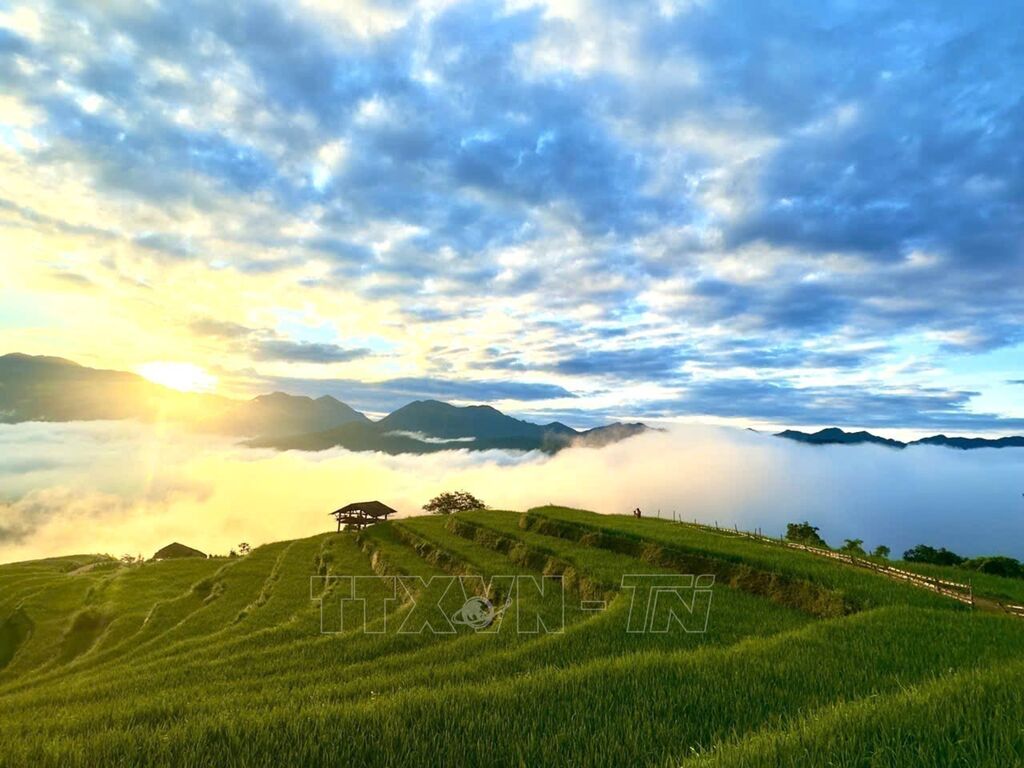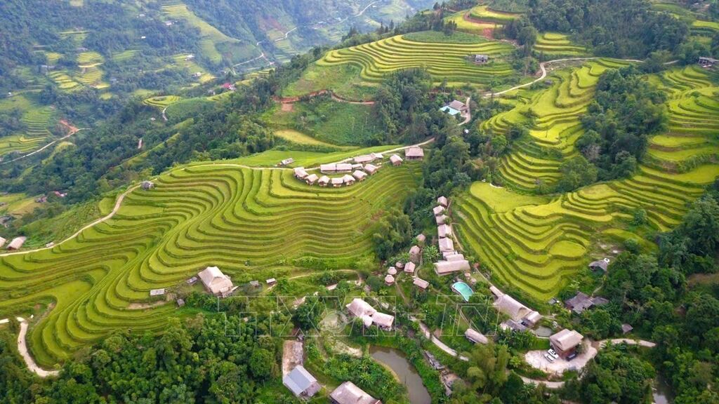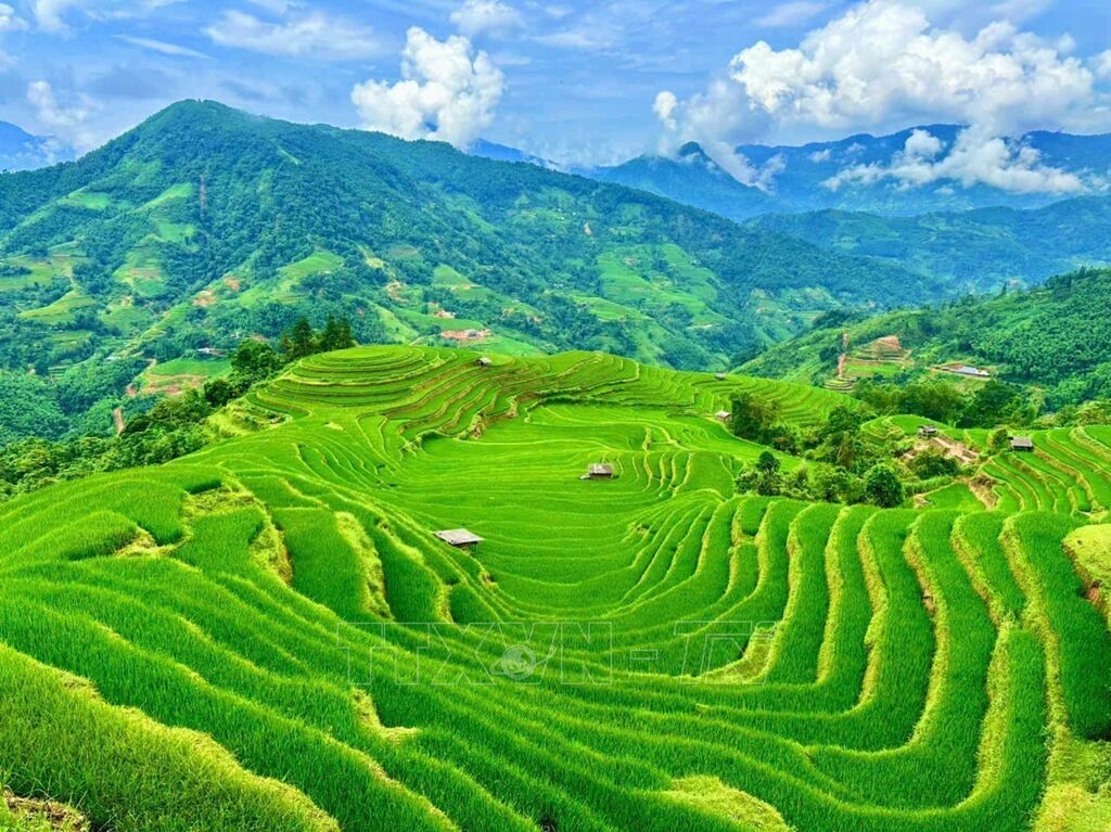 Từ trên cao nhìn xuống, những thửa ruộng bậc thang như những nấc thang dẫn lên trời, trải dài đến tận chân mây.