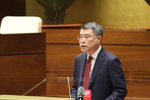 Ủy viên Bộ Chính trị, Bí thư Trung ương Đảng, Trưởng ban Tổ chức Trung ương Lê Minh Hưng trình bày các nội dung chính, trọng tâm việc triển khai tổng kết Nghị quyết số 18-NQ/TW của Ban Chấp hành Trung ương Đảng khóa XII. -