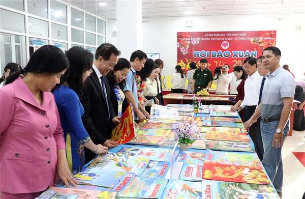 TTXVN - Ngày 5/2, tại Thư viện tỉnh, Sở Văn hóa và Thể thao phối hợp với Hội Nhà báo tỉnh Ninh Bình tổ chức khai mạc trưng bày Báo Xuân và Triển lãm mỹ thuật năm 2024 thu hút đông đảo công chúng tham quan.