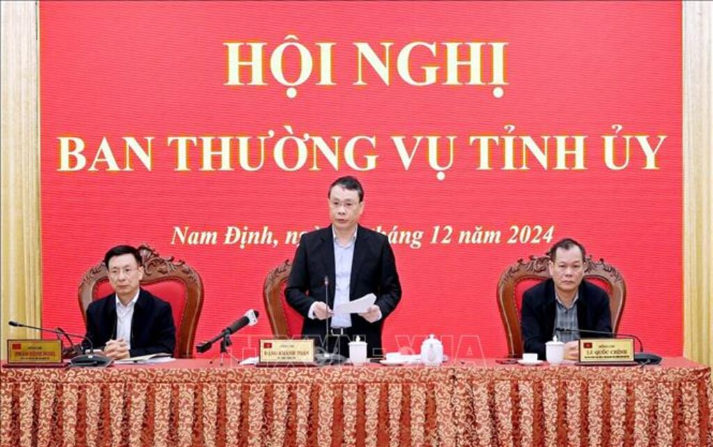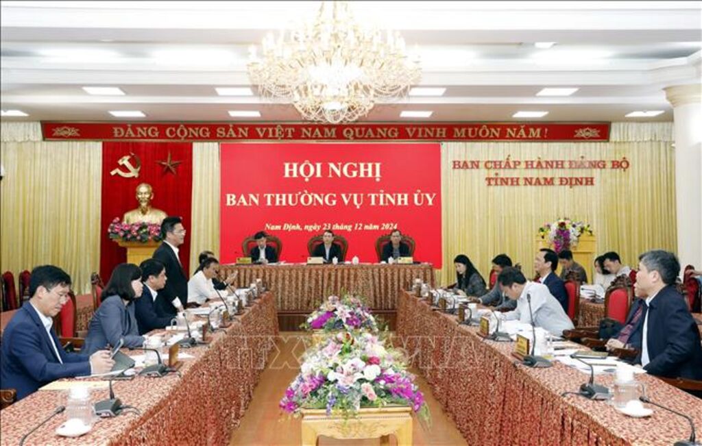 Ngày 23/12, Ban Thường vụ Tỉnh ủy Nam Định tổ chức Hội nghị thảo luận và cho ý kiến Dự thảo tổng kết công tác năm 2024; phương hướng nhiệm vụ năm 2025; Dự thảo báo cáo tổng kết Nghị quyết số 18-NQ/TW ngày 25/10/2017 của Ban Chấp hành Trung ương Đảng khóa XII “Một số vấn đề về tiếp tục đổi mới, sắp xếp tổ chức bộ máy của hệ thống chính trị tinh gọn, hoạt động hiệu lực, hiệu quả" và một số nội dung quan trọng khác.