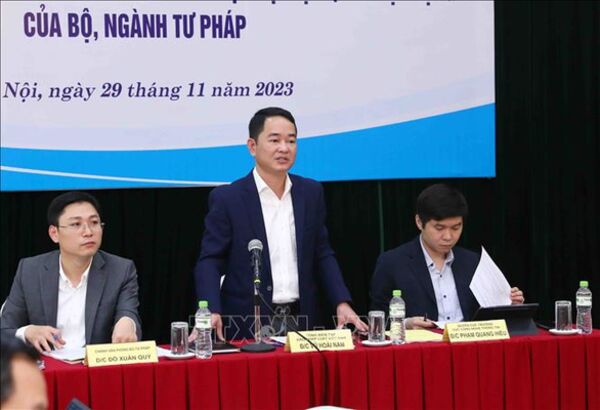 TTXVN - Sáng 1/12, Bộ Tư pháp tổ chức Hội nghị triển khai thực hiện nhiệm vụ công tác thi hành án dân sự, thi hành án hành chính năm 2024. Bộ trưởng Bộ Tư pháp Lê Thành Long dự và phát biểu chỉ đạo.