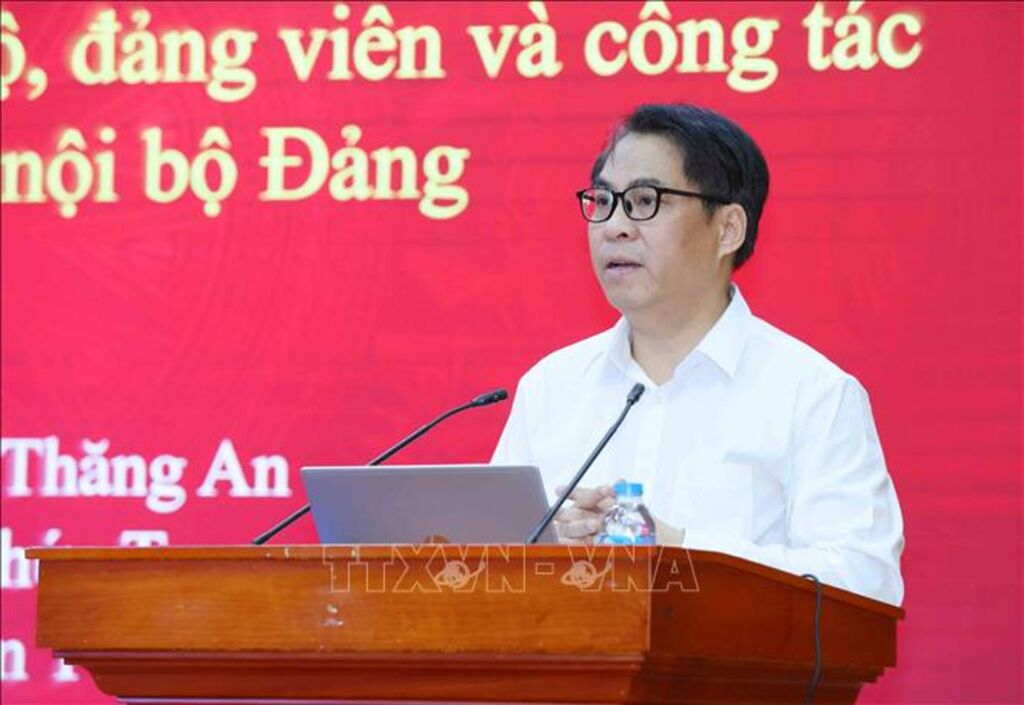 Hội nghị nghe đồng chí Phan Thăng An, Phó Trưởng ban Tổ chức Trung ương báo cáo chuyên đề: Một số nội dung mới trong các quy định của Bộ Chính trị, Ban Bí thư và hướng dẫn của Ban Tổ chức Trung ương về công tác cán bộ, công tác bảo vệ chính trị nội bộ và công tác đảng viên.