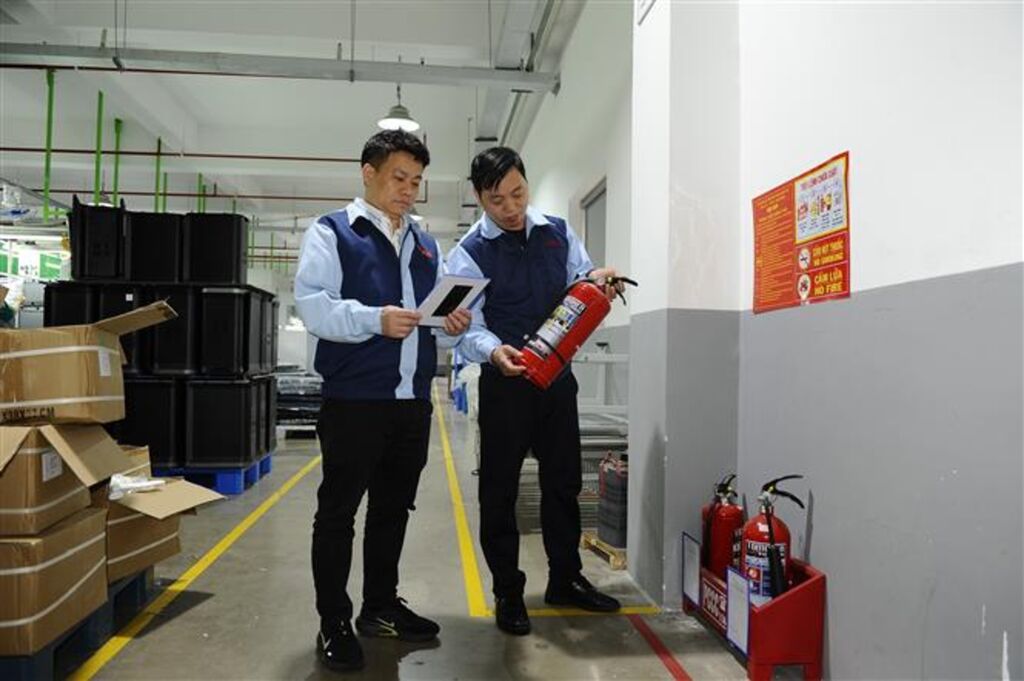 "Công ty thường xuyên chỉ đạo lực lượng phòng cháy, chữa cháy tổ chức kiểm tra toàn diện hệ thống trang thiết bị chữa cháy, lối thoát nạn, hệ thống điện và kịp thời xử lý dứt điểm những tồn tại, nguy cơ mất an toàn. Trước khi công nhân tan ca, công tác nhắc nhở tắt toàn bộ máy móc, thiết bị, cầu dao điện được thực hiện nghiêm túc. Sau đó, lực lượng bảo vệ tiếp tục rà soát, kiểm tra tổng thể nhà xưởng. Cùng với đó, hệ thống camera giám sát hoạt động 24/24 giờ tại phòng bảo vệ giúp phát hiện sớm, xử lý kịp thời các tình huống cháy, nổ phát sinh. Công ty trang bị đầy đủ dụng cụ, phương tiện, thiết bị chữa cháy, thoát nạn như hệ thống báo cháy tự động, máy bơm, bình chữa cháy, biển báo thoát nạn...", ông Li Yong chia sẻ.
