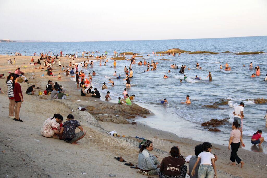 Ghi nhận tại bãi biển Thương Chánh, phường Phan Thiết, ngay từ đầu giờ chiều đã bắt đầu đông đúc người xuống tắm biển, hóng gió, dạo mát. Các tuyến đường dẫn ra biển như, Lê Lợi, Võ Thị Sáu… ghi nhận lượng phương tiện tăng cao so với các thời điểm khác trong ngày. Các bãi giữ xe dọc khu vực ven biển cũng đông đúc.