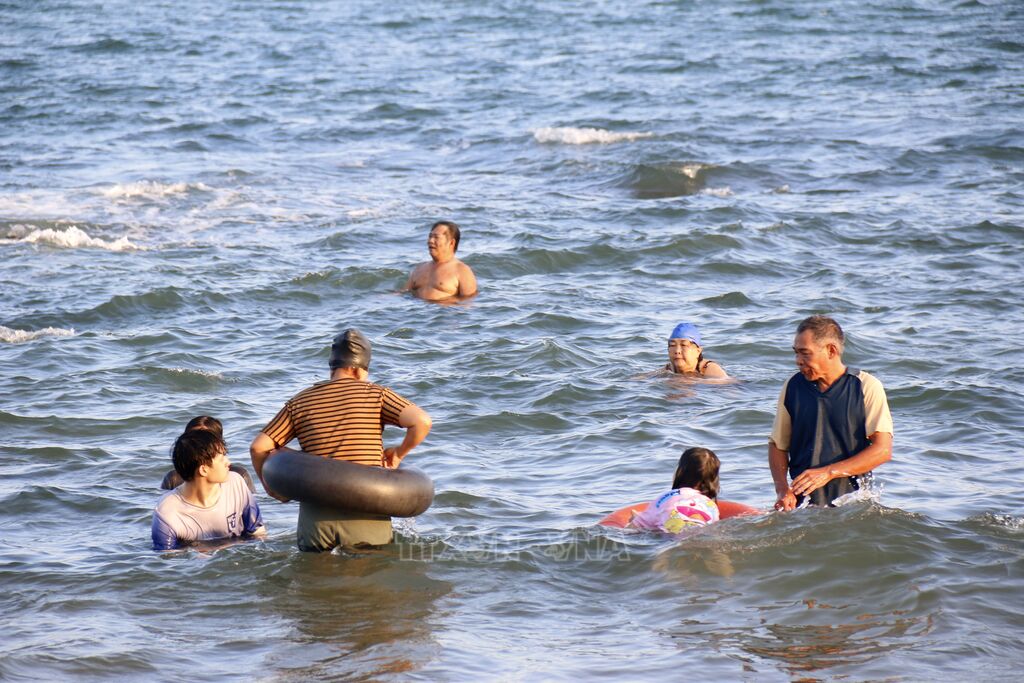 Còn đối với ông Trần Văn Lai, phường Bình Thuận, cả ngày làm việc ở ngoài trời, thời tiết ơi bức khiến cơ thể rất mệt mỏi. Ra biển ngâm mình một chút, ông thấy dễ chịu hơn nhiều như được sạc lại năng lượng. Tuy đông người nhưng không khí thoáng đãng, gió biển thổi mát nên ai cũng thấy thoải mái.