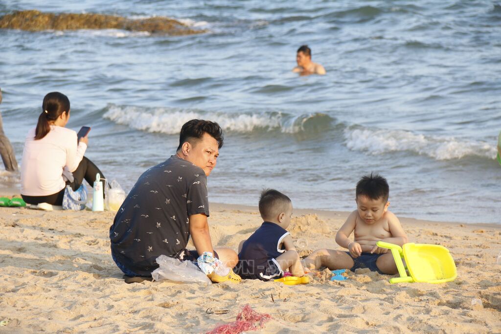 Anh Phan Nhân, phường Phú Thủy cho biết, mấy ngày nay, trời rất nóng. Cứ đến chiều là cả nhà anh ra biển, vừa hóng gió vừa cho tụi nhỏ tắm mát.