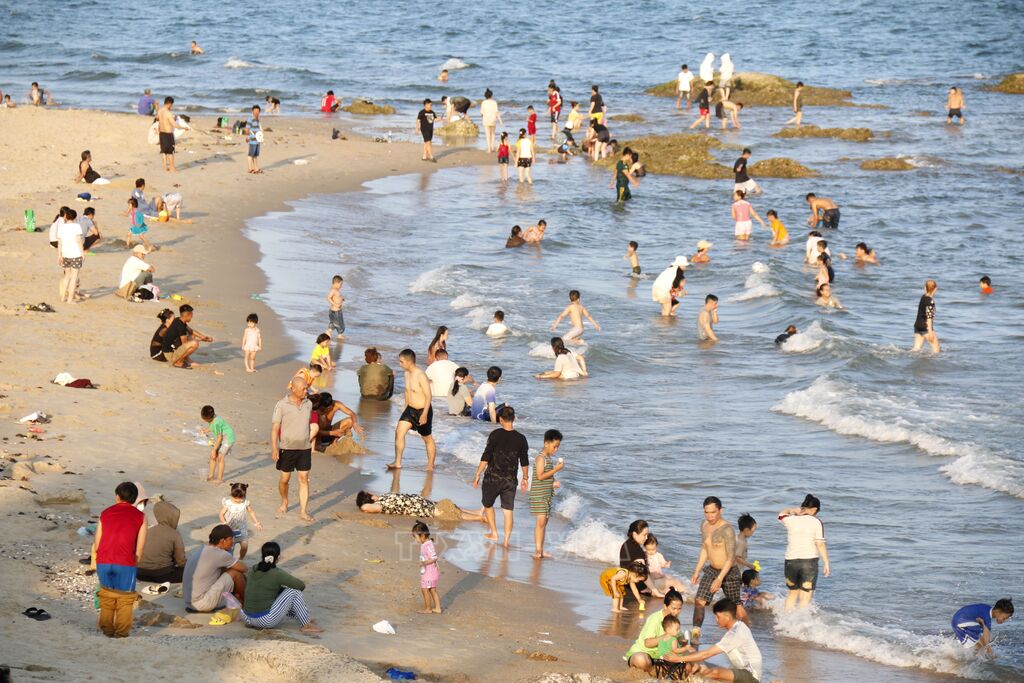 Để “giải nhiệt”, người dân các địa phương đã đổ xô về các bãi biển để tắm mát và vui chơi.
