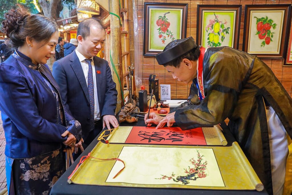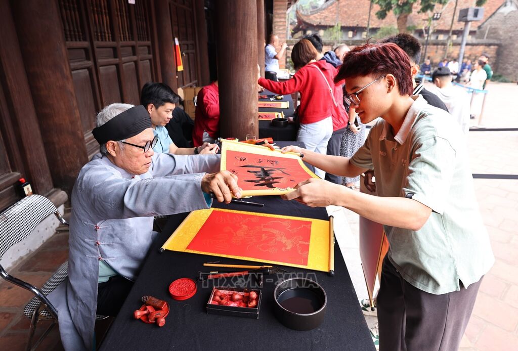 Mỗi độ Tết đến, Xuân về, tại Di tích Quốc gia đặc biệt Văn Miếu - Quốc Tử Giám, hình ảnh những “ông đồ” bên nghiên mực, giấy đỏ lại trở thành điểm hẹn văn hóa quen thuộc của người dân và du khách. Người xin chữ nâng niu tờ giấy còn thơm mùi mực mới, gửi gắm trong đó ước vọng về một năm bình an, học hành tiến bộ, công việc hanh thông. Con chữ không chỉ là “lộc Xuân”, mà là thông điệp về sự học, về trách nhiệm cá nhân và tinh thần phụng sự đất nước.