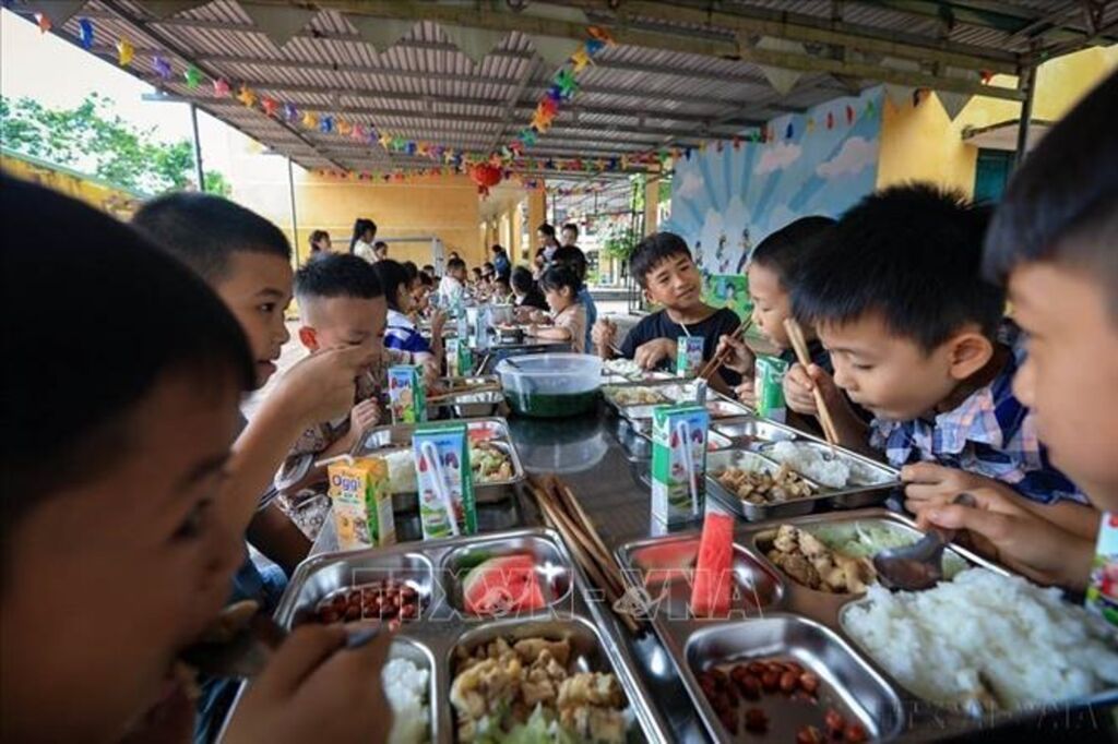 Việt Nam đạt nhiều thành tựu trong nâng cao chất lượng dân số: Tình trạng suy dinh dưỡng, tử vong bà mẹ, trẻ em giảm mạnh, tầm vóc, thể lực người Việt Nam được cải thiện. Trong ảnh: Bữa cơm bán trú đảm bảo dinh dưỡng của học sinh xóm Rằng, xã Cao Sơn (Đà Bắc, Hòa Bình) sau bão số 3 (Yagi).