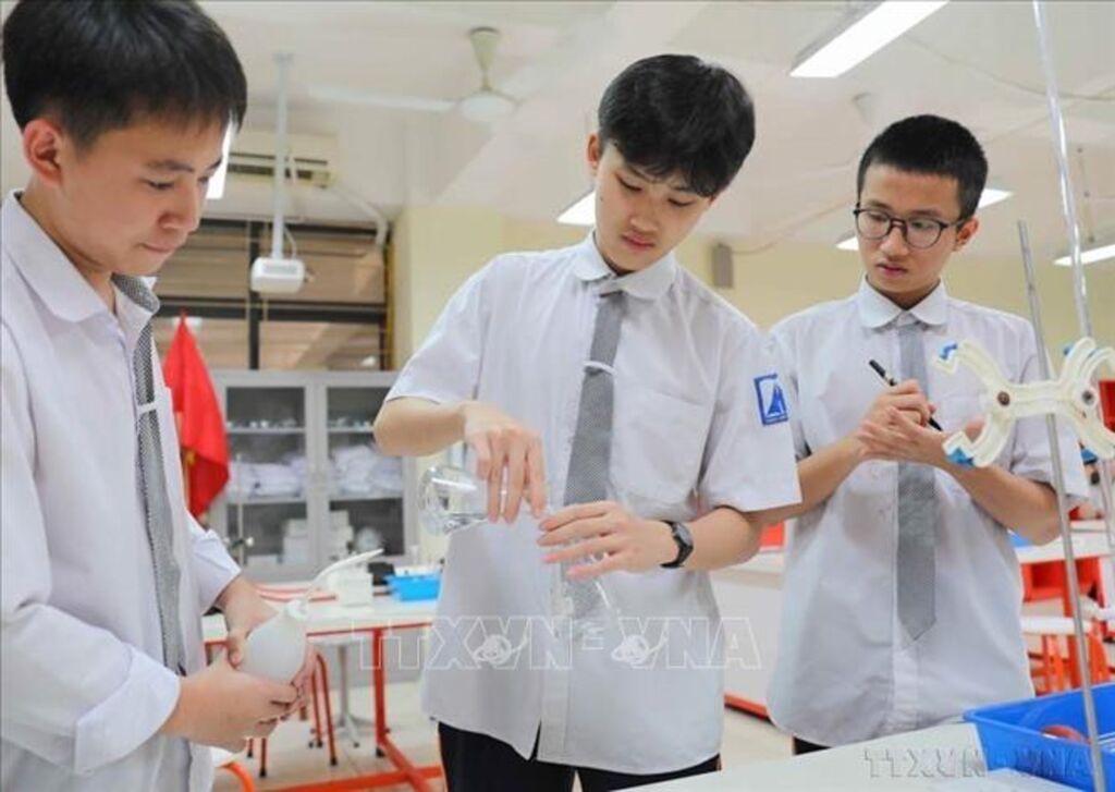Phát huy lợi thế của thời kỳ cơ cấu "dân số vàng", đảm bảo nguồn lực cho sự phát triển nhanh, bền vững của đất nước thì điều kiện quan trọng và then chốt là cần nâng cao được chất lượng dân số, nâng cao chất lượng nguồn nhân lực. Trong ảnh: Giờ thực hành của học sinh Trường THPT chuyên Hà Nội - Amsterdam.