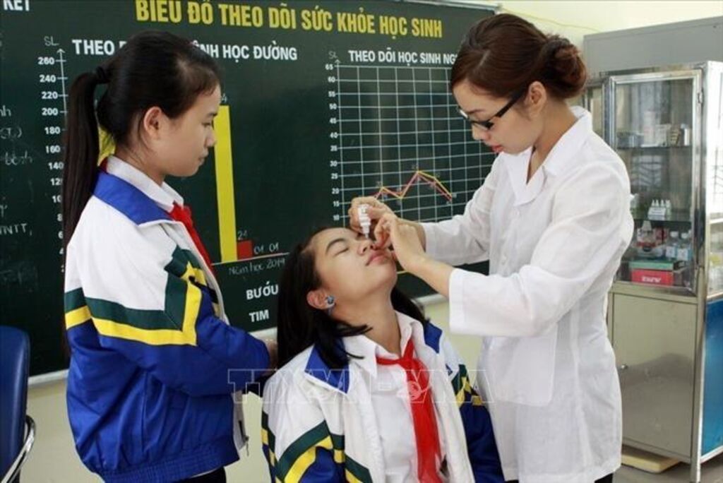 Các kết quả công tác dân số đạt được trong thời gia qua góp phần quan trọng vào phát triển kinh tế - xã hội của đất nước, góp phần vào công cuộc xóa đói, giảm nghèo, bảo vệ, chăm sóc sức khỏe, thực hiện thành công các mục tiêu phát triển thiên niên kỷ. Trong ảnh: Kiểm tra sức khỏe định kỳ miễn phí cho học sinh Trường THCS Đoàn Kết, quận Hai Bà Trưng (Hà Nội).