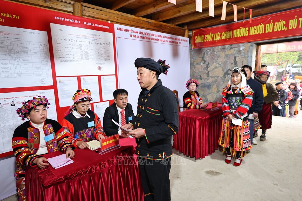 Tại Đình Tân Trào, nơi cách đây 81 năm (ngày 16 – 17/8/1945) diễn ra Đại hội đại biểu Quốc dân, nay gọi là Quốc dân Đại hội Tân Trào, khu vực bỏ phiếu số 1 (thuộc đơn vị bầu cử số 1 xã Tân Trào) có 785 cử tri, trong đó hơn 90% là đồng bào dân tộc Tày. Từ sáng sớm, hàng trăm cử tri đã có mặt tại đây chờ đến giờ khai mạc, sau đó lần lượt thực hiện quyền và nghĩa vụ công dân của mình.
