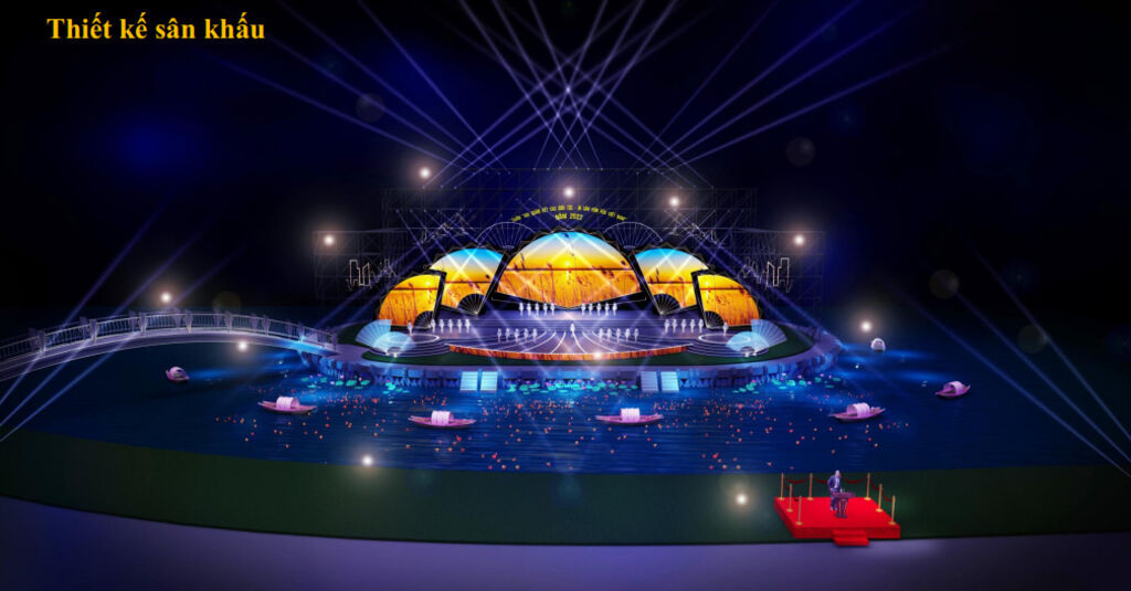 Sân khấu được thiết kế theo hình chiếc quạt, đây là một hình ảnh không thể thiếu trong di sản văn hóa Việt Nam, tất cả các nan quạt chụm về một phía tượng trưng cho tinh thần đại đoàn kết dân tộc. Từ đó cũng có thể liên tưởng đến hình ảnh những cánh buồm đưa đất nước ra biển lớn.