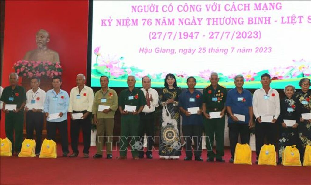 Hòa cùng không khí tri ân những người có công với nước, trong những ngày tháng 7, Hậu Giang đã tổ chức nhiều hoạt động thiết thực như: Hội nghị gặp gỡ gia đình chính sách, người có công nhằm nắm bắt tâm tư, nguyện vọng của người có công, kịp thời giải quyết những kiến nghị, đề xuất chính đáng; động viên tinh thần và thông tin đến người có công về chính sách mới của Nhà nước. Địa phương thực hiện đầy đủ, kịp thời các chế độ ưu đãi đối với người có công và thân nhân người có công với cách mạng trên địa bàn; dành trên 12 tỷ đồng để tặng quà cho hơn 18 ngàn người có công với cách mạng nhân kỷ niệm 76 năm Ngày Thương binh - Liệt sỹ.