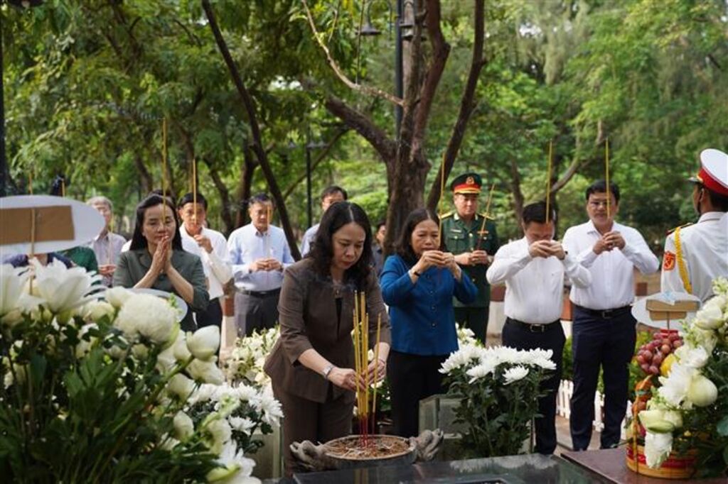Trong không khí trang nghiêm và thành kính, Phó Chủ tịch nước Võ Thị Ánh Xuân cùng Đoàn công tác dành phút mặc niệm, bày tỏ lòng thành kính, sự biết ơn...