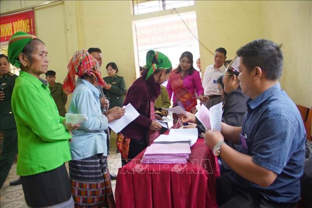 Cử tri ở bản Phồng, xã Tam Thái, tỉnh Nghệ An làm thủ tục bỏ phiếu sớm.