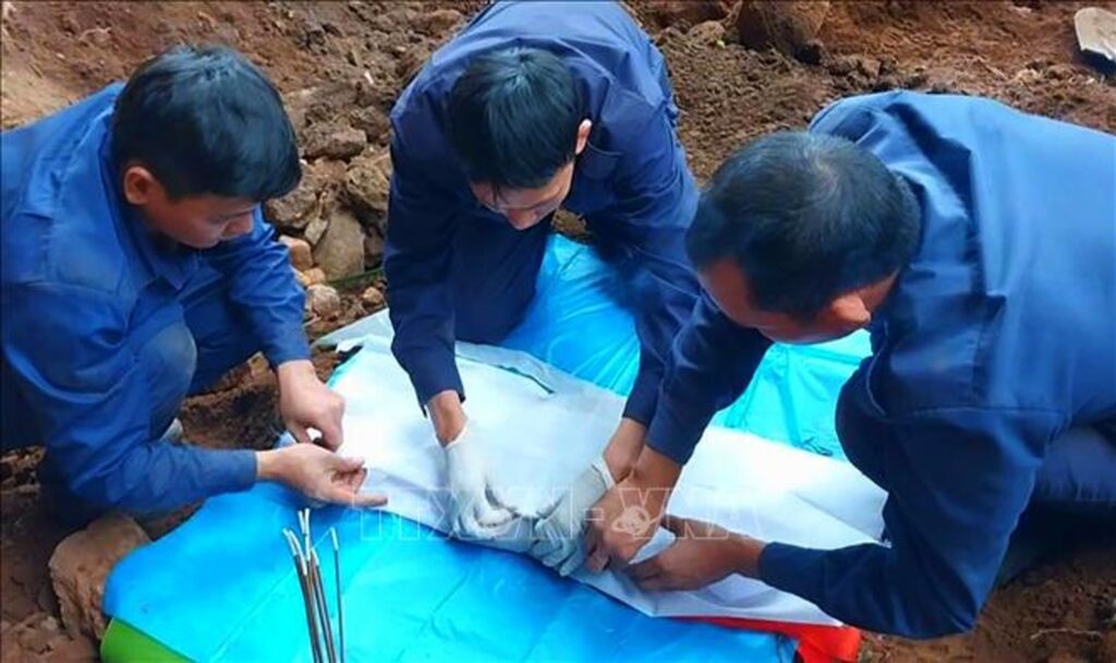 Các hài cốt liệt sĩ được tìm thấy nằm ở độ sâu từ 0,8-1,5m, còn nhiều xương vụn, răng, được bọc kỹ trong tăng võng và nhiều di vật khác.