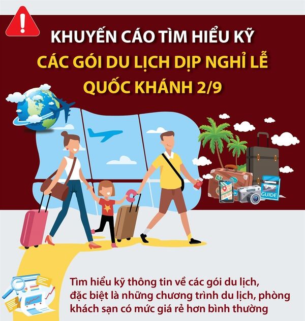 Bộ Văn hóa, Thể thao và Du lịch nhận định: Dự báo lượng khách du lịch sẽ tăng mạnh trong dịp nghỉ lễ Quốc khánh 2/9 nên Bộ đã có khuyến cáo với khách du lịch, đặc biệt là các chương trình du lịch, phòng khách sạn với mức giá rẻ hơn bình thường để tránh "tiền mất, tật mang".