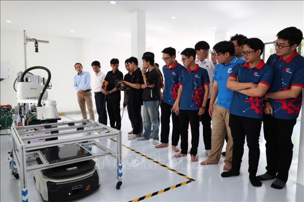 Không gian phòng thí nghiệm mới cho phép sinh viên trực tiếp thực hành với robot công nghiệp, hệ thống điều khiển tự động và phần mềm mô phỏng dây chuyền sản xuất. Đây là những công nghệ đang được ứng dụng rộng rãi trong các nhà máy sản xuất điện tử, cơ khí chính xác và công nghiệp chế tạo.