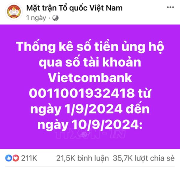 Trước tình hình thiệt hại to lớn mà đồng bào các tỉnh khu vực phía Bắc đang phải gánh chịu, đặc biệt là những mất mát về người, nhà cửa và tài sản, phát huy tinh thần “lá lành đùm lá rách”, Ủy ban MTTQ thành phố Hội An đã tổ chức các đợt quyên góp, ủng hộ. Số tiền 1 tỷ đồng là tình cảm của nhân dân thành phố Hội An gửi tặng nhân dân huyện Cô Tô với mong muốn đóng góp một phần công sức hỗ trợ nhân dân huyện đảo khắc phục, sửa chữa nhà cửa, tàu thuyền để ổn định cuộc sống, tiếp tục sản xuất, bám biển, bám đảo, giữ vững chủ quyền an ninh biên giới quốc gia.