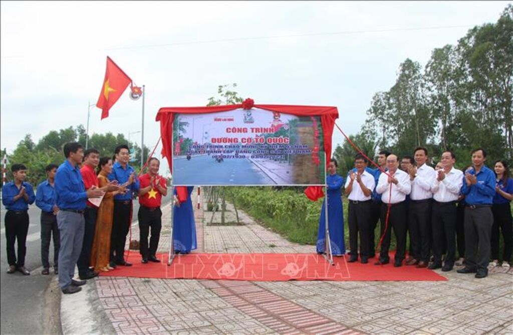 Khánh thành công trình “Đường cờ Tổ quốc” tại Hậu Giang nhân kỷ niệm 93 năm Ngày thành lập Đảng và mừng thành công Đại hội Đoàn toàn quốc lần thứ XII. (Ảnh: Hồng Thái/TTXVN)