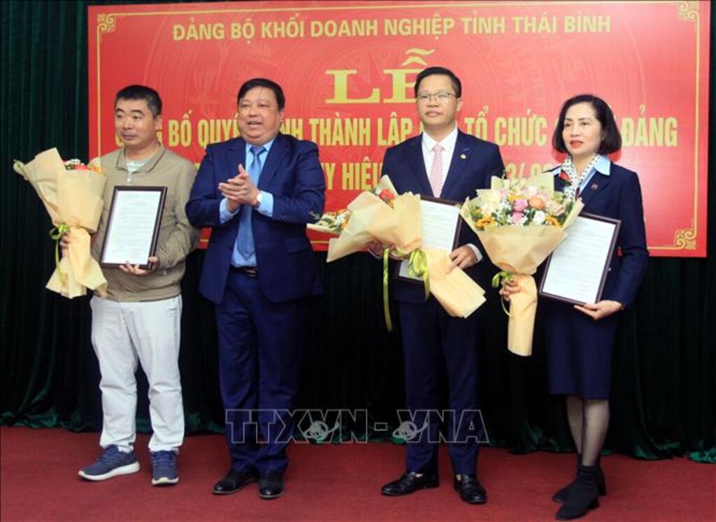 Trao quyết định thành lập 3 tổ chức cơ sở đảng thuộc Đảng bộ Khối Doanh nghiệp tỉnh Thái Bình. (Ảnh: Thế Duyệt/TTXVN)
