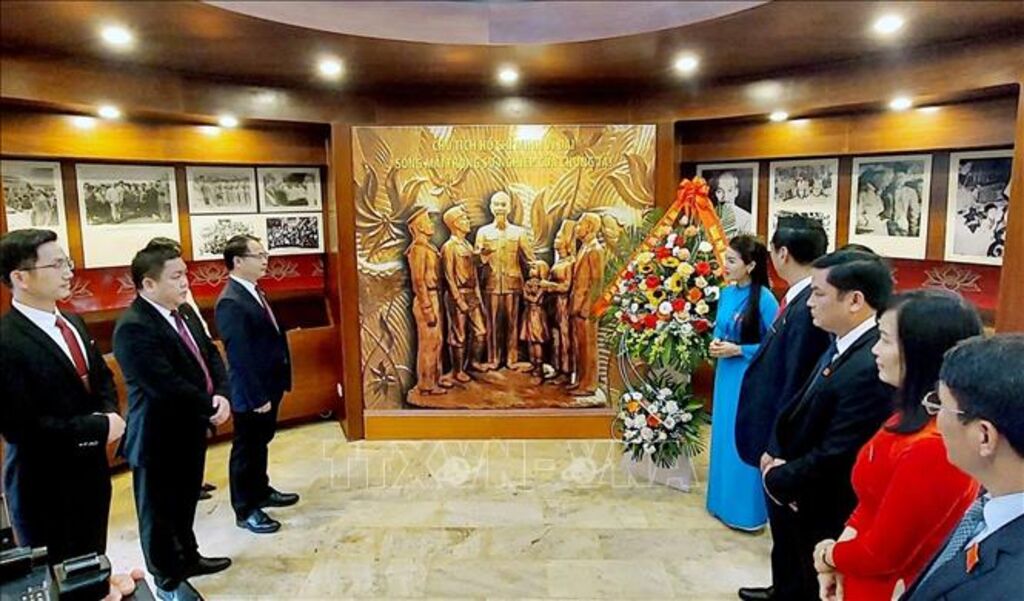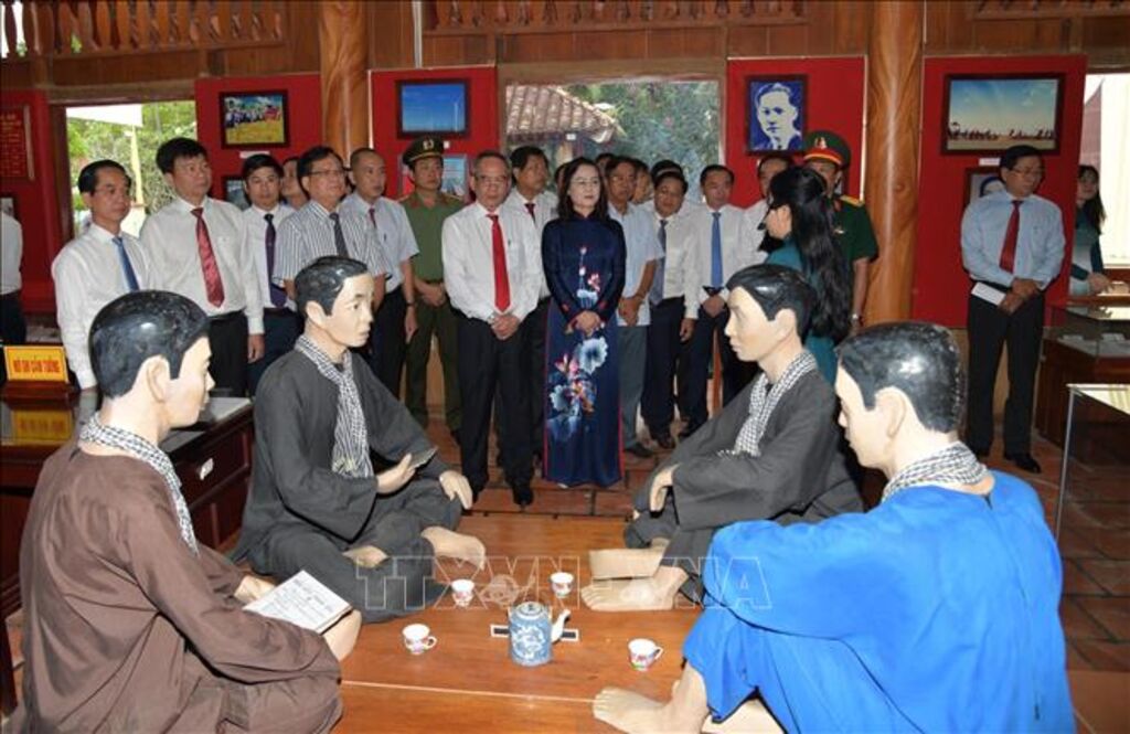 Lãnh đạo tỉnh Bạc Liêu tham quan các hiện vật được trưng bày tại Di tích lịch sử quốc gia nơi thành lập Chi bộ Đảng Cộng sản đầu tiên của tỉnh. (Ảnh: Chanh Đa/TTXVN)