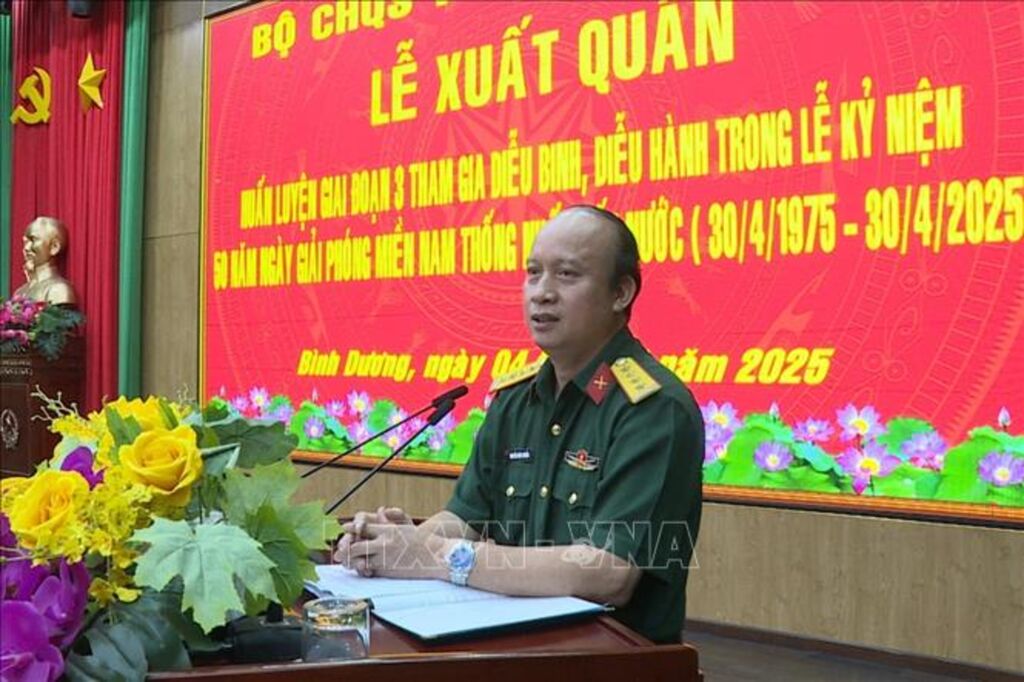 Ngày 4/4, Bộ Chỉ huy Quân sự tỉnh Bình Dương tổ chức Lễ xuất quân huấn luyện, chuẩn bị tham gia diễu binh, diễu hành tại Thành phố Hồ Chí Minh vào ngày 30/4, nhân kỷ niệm 50 năm Ngày Giải phóng miền Nam, thống nhất đất nước (30/4/1975 – 30/4/2025).